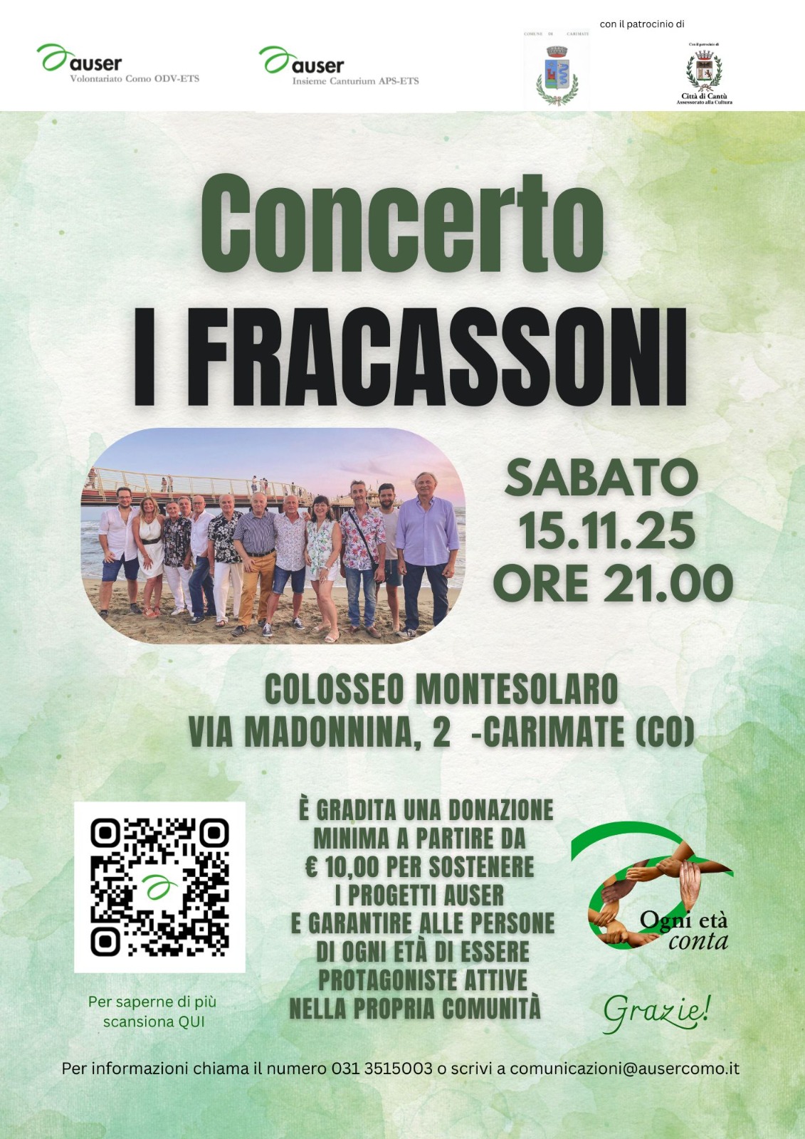 Evento promosso da Auser Como con il patrocinio del Comune di Carimate per sostenere i progetti Auser e garantire alle persone di ogni età di essere protagoniste attive nella propria comunità.