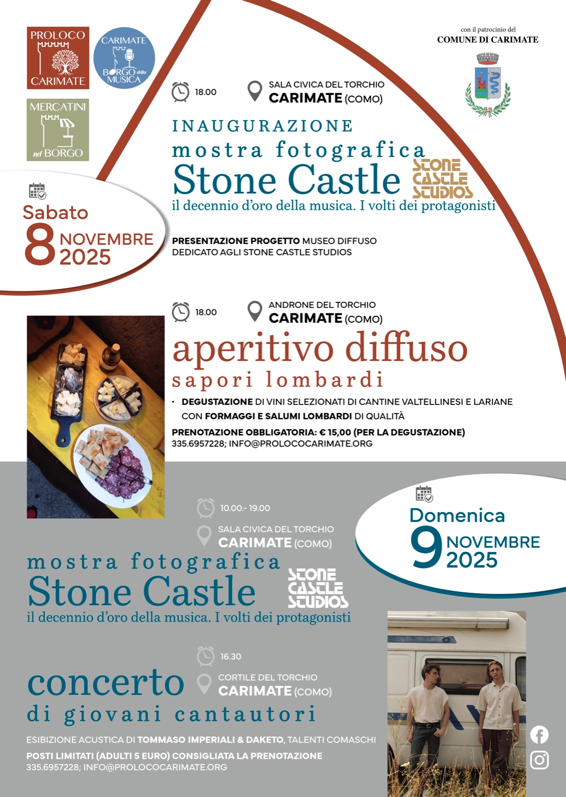 sabato 8 novembre | ore 18.00 inaugurazione della mostra fotografica e presentazione del progetto Museo diffuso dedicato agli Stone Castle Studios. A seguire aperitivo diffuso  con sapori lombardi, prenotazione obbligatoria.